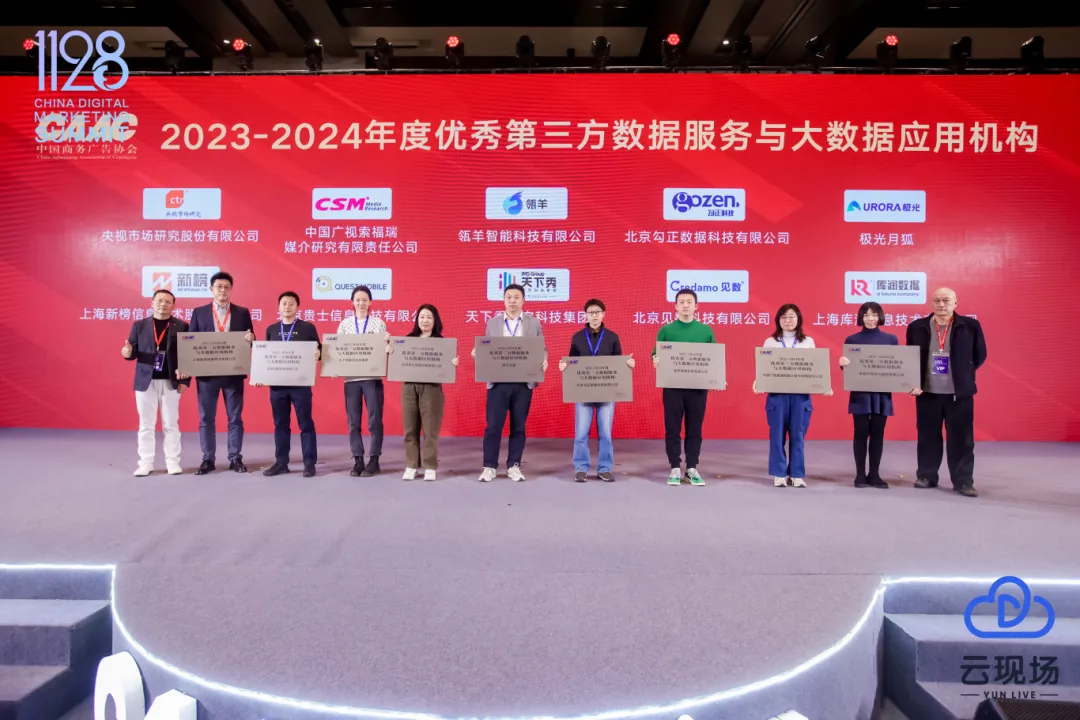 2024年11月28日,在第十二届数字营销峰会暨CAAC数委会年会举办期间,中国商务广告协会数字营销专业委员会(简称数委会)对2023-2024年度优秀会员单位及优秀个人进行了年度表彰,CTR凭借一如既往的优质数据产品及洞察服务,斩获2023-2024年度优秀第三方数据服务与大数据应用机构大奖,并入选《中国数字营销生态版图(2024版)》。
