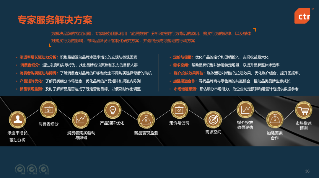 CTR独特的消费者洞察与专家服务,如今已能够深度追踪购买行为,为品牌方捕捉商机、规避风险,在品牌、渠道、产品、定价、媒介等多个环节形成关键性支持。